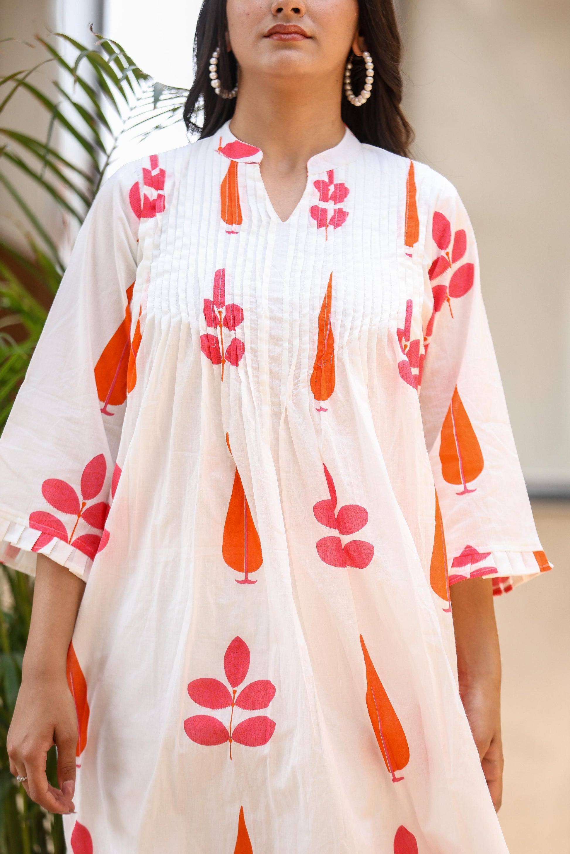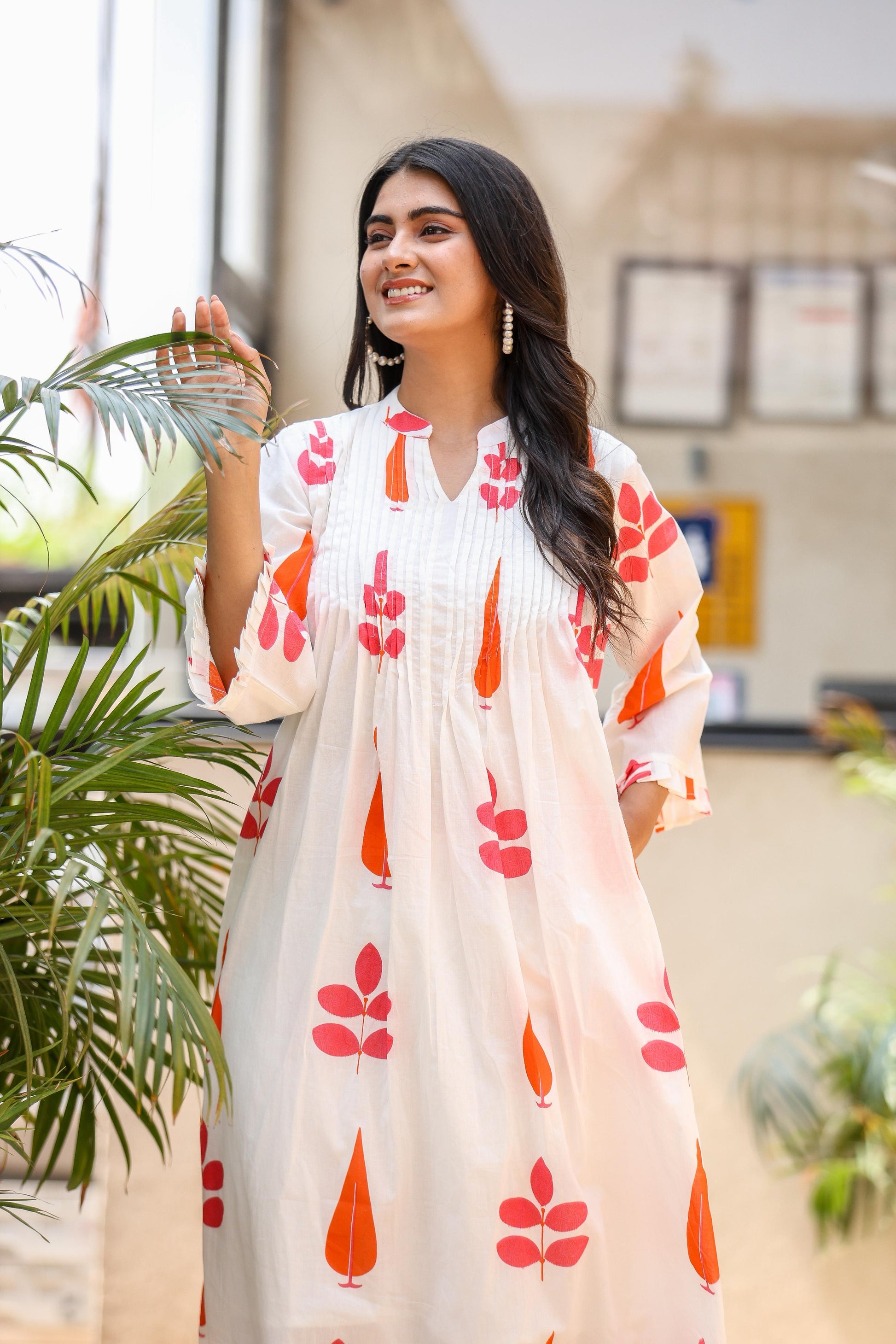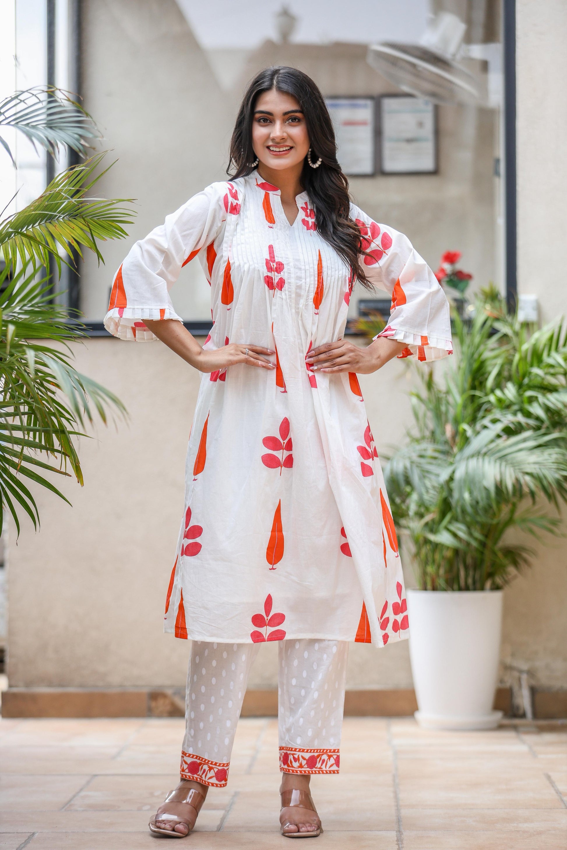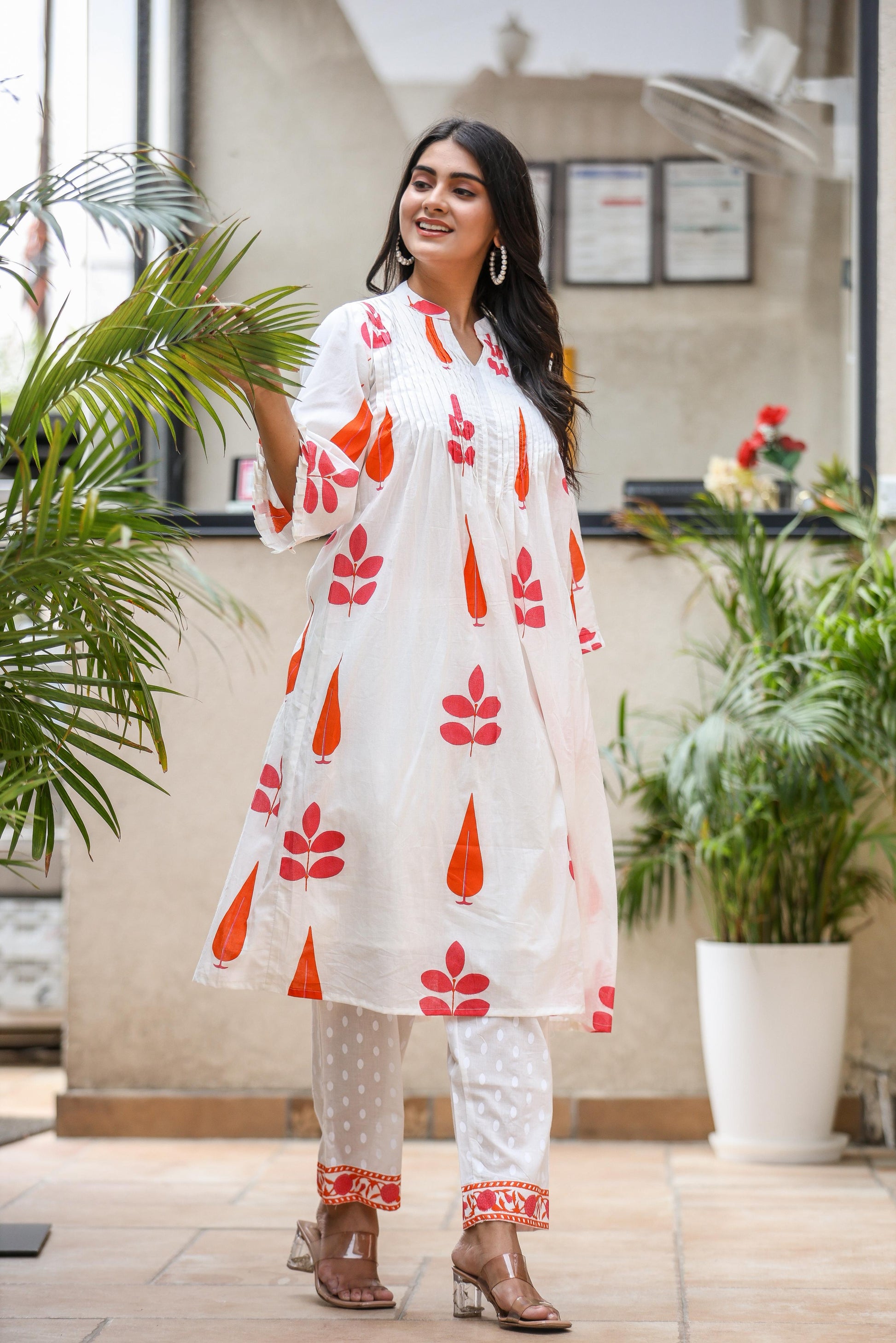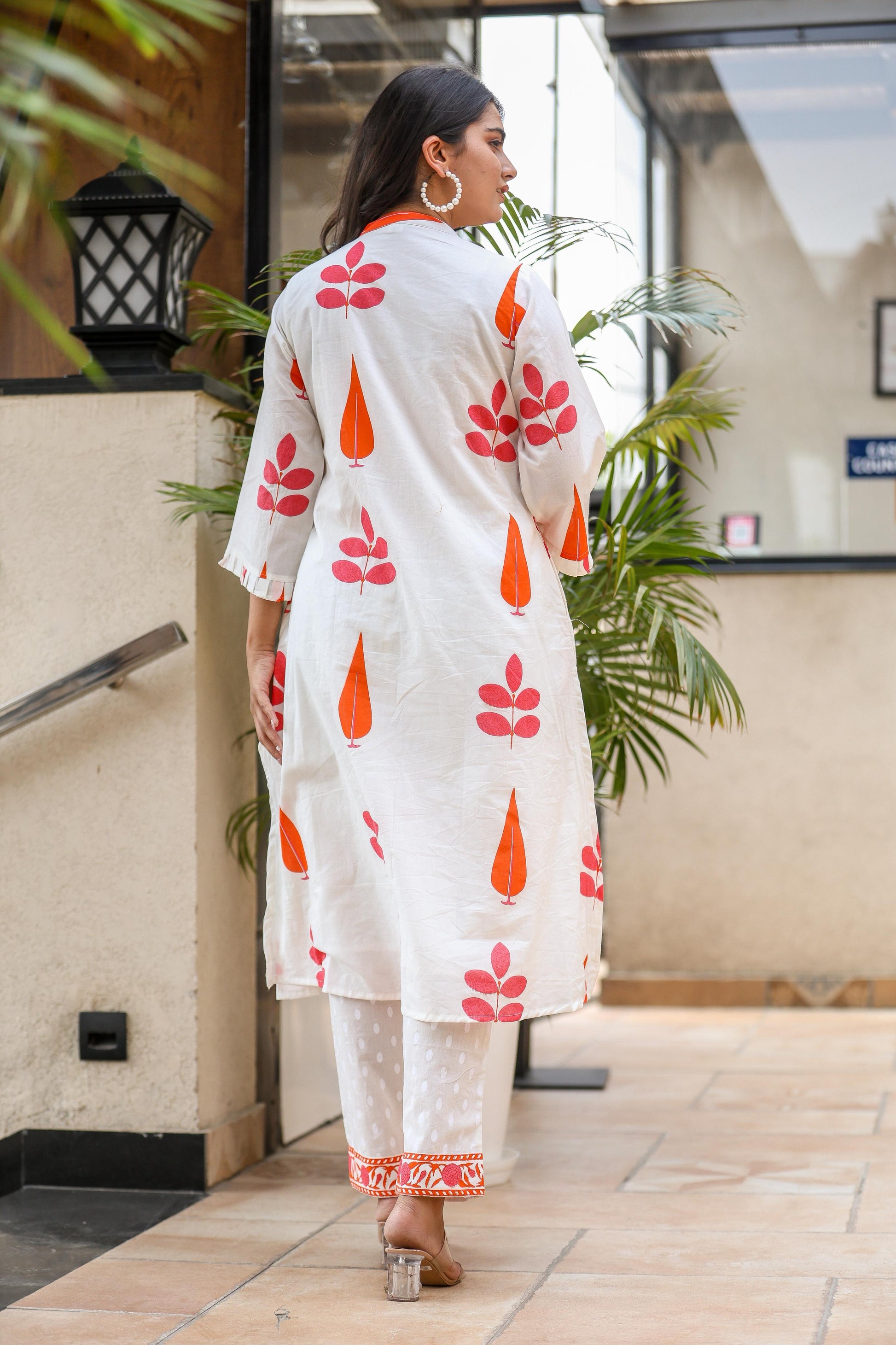 Hem Detailing: Red-orange printed border matching the kurta print